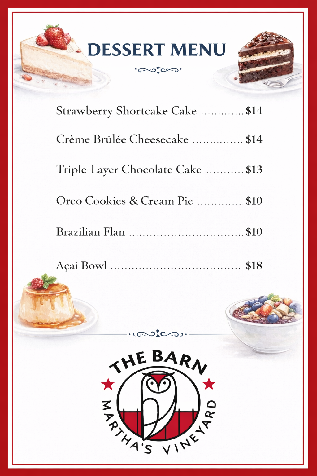 Dessert Menu